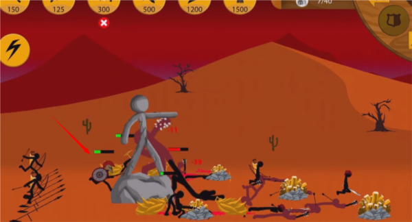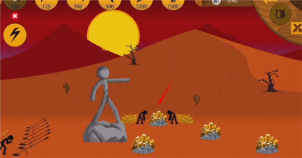 2、有足够的矿石,就能点击攻击类的火柴人,派遣它们去摧毁敌人的基地。