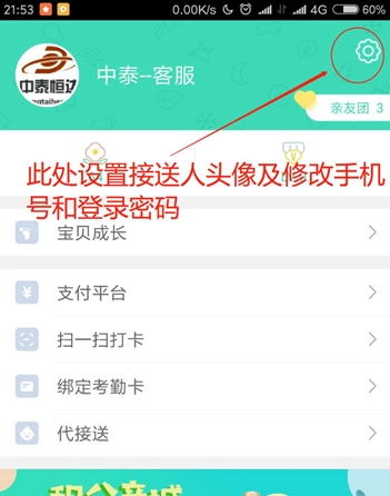 点击“我”,接着点击右上角的设置图标,就能进入设置接送人头像的界面。