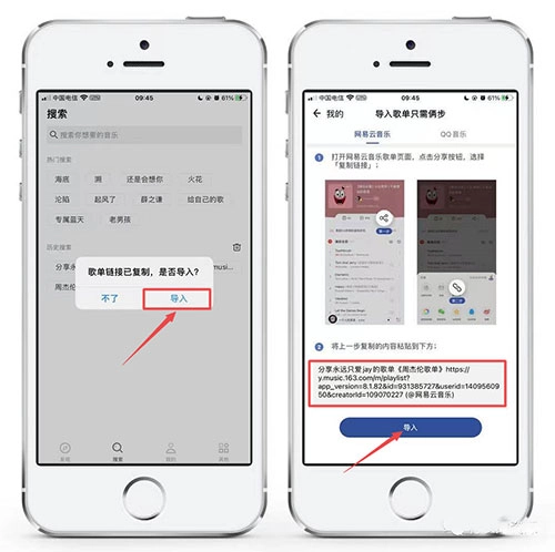 复制链接后返回【发条】应用,系统会自动识别链接里的歌单,接着按照提示点击【导入】按钮,就能完成同步操作了。