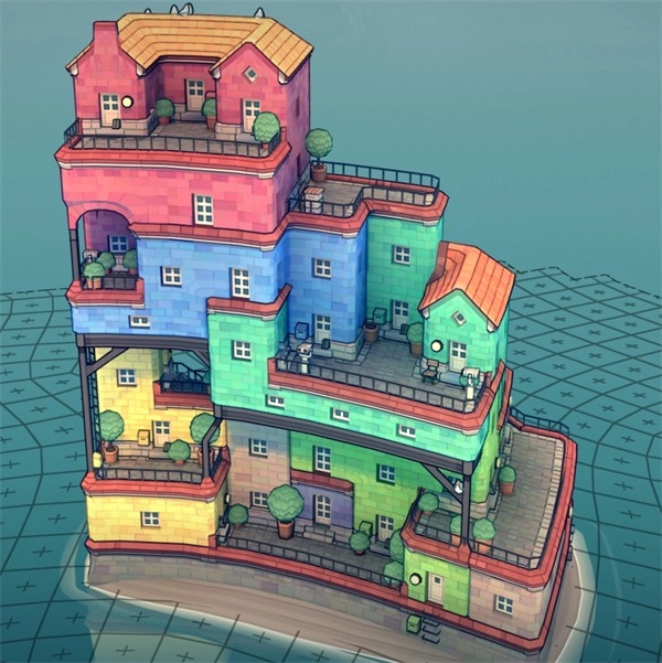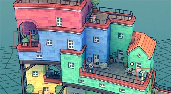 ②确保房屋颜色不同。如果使用相同的颜色,缺口上方的房子底部会出现脚手架。