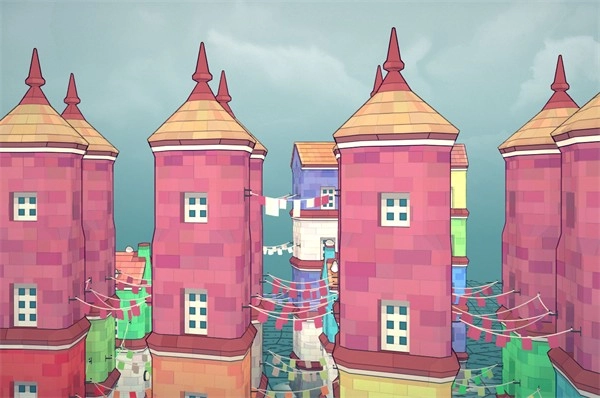 彩旗会在间隔1或者2个空间间隙的2层及以上建筑物之间生成,建筑物需满足上一层建筑基块与下一层的颜色不同。
