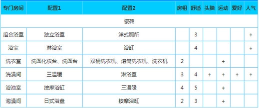 3)当居民的收入比较高了,这是我们就要熟背专门房间大全啦,通过规划各种专门房间来提高房屋舒适度与房租。