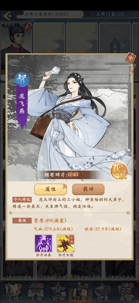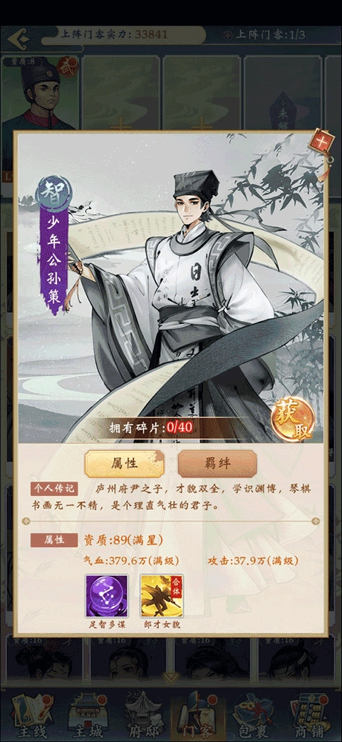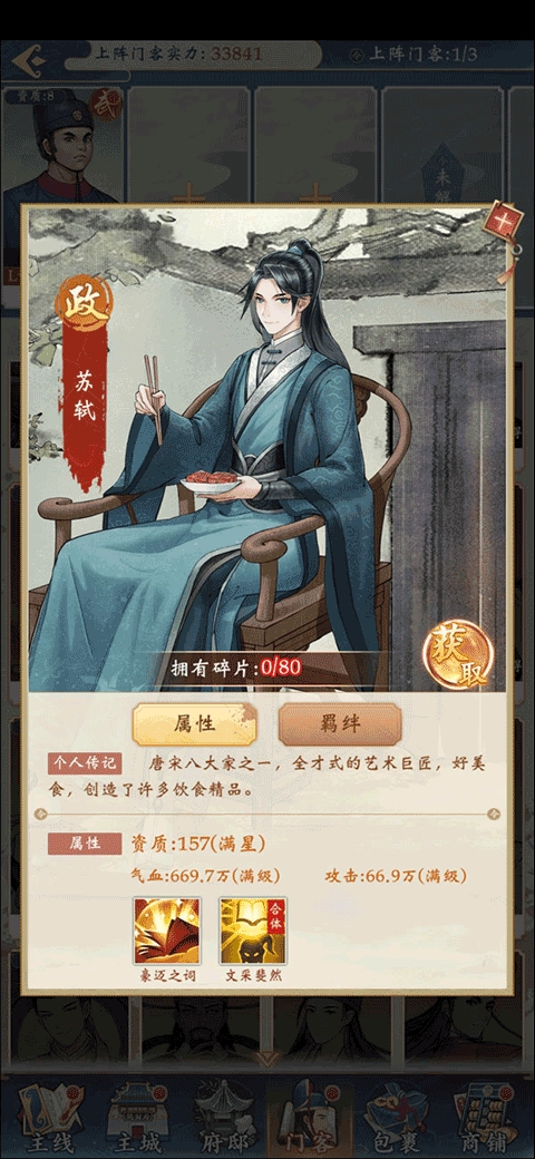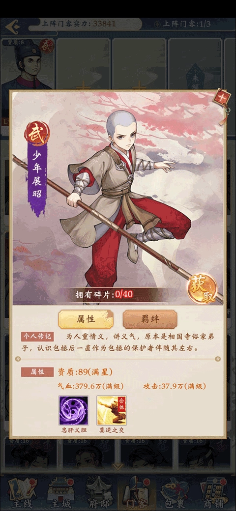 正常橙色门客里,可以围绕府尹包拯去构建搭配上阵。在聚贤阁中兑换的门客,也都互相有羁绊。