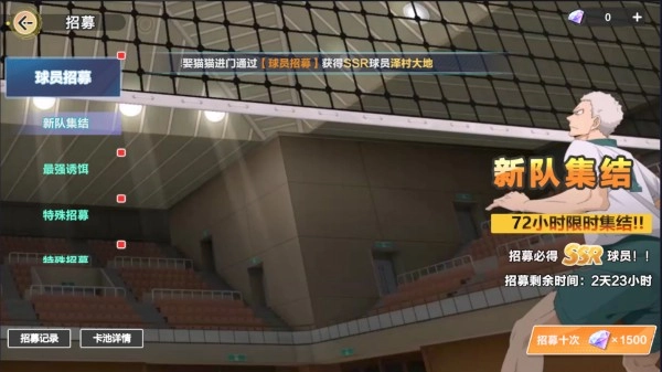 3、大家可以选择喜欢的球员进行招募,目前公测期间主推的球员是乌野高中的。他们之间会有羁绊效果能帮你更好地开荒。