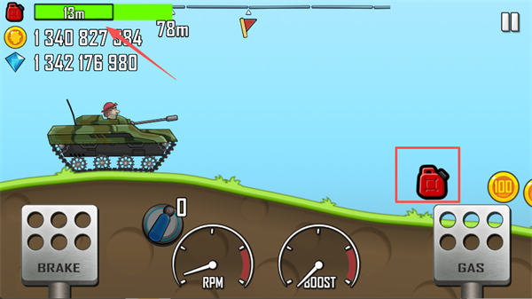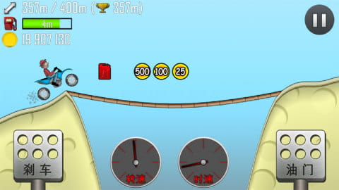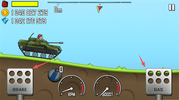 4、游戏中左侧是刹车键,右侧是油门键,合理控制油门与刹车的节奏,保持车辆平衡,避免在起伏路段翻车。