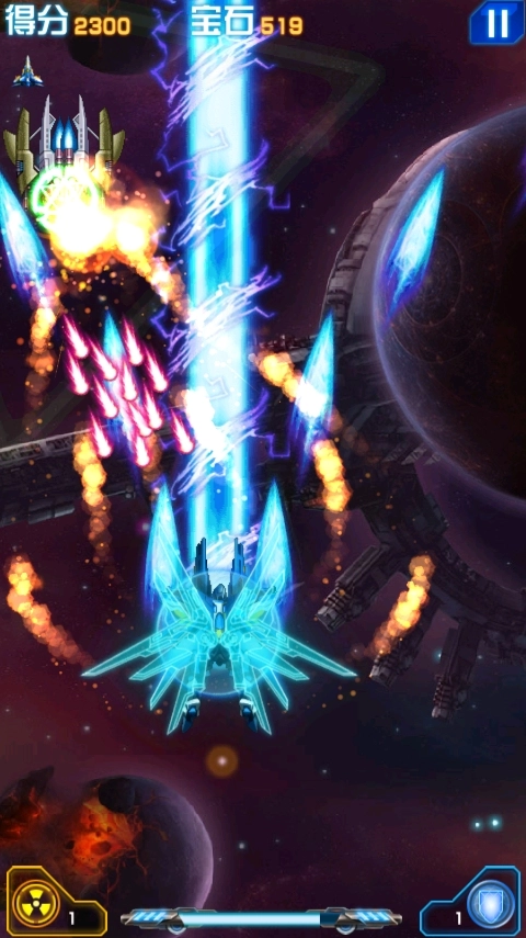 2、合理的使用战机的武器和技能,对敌人进行有效的打击。
