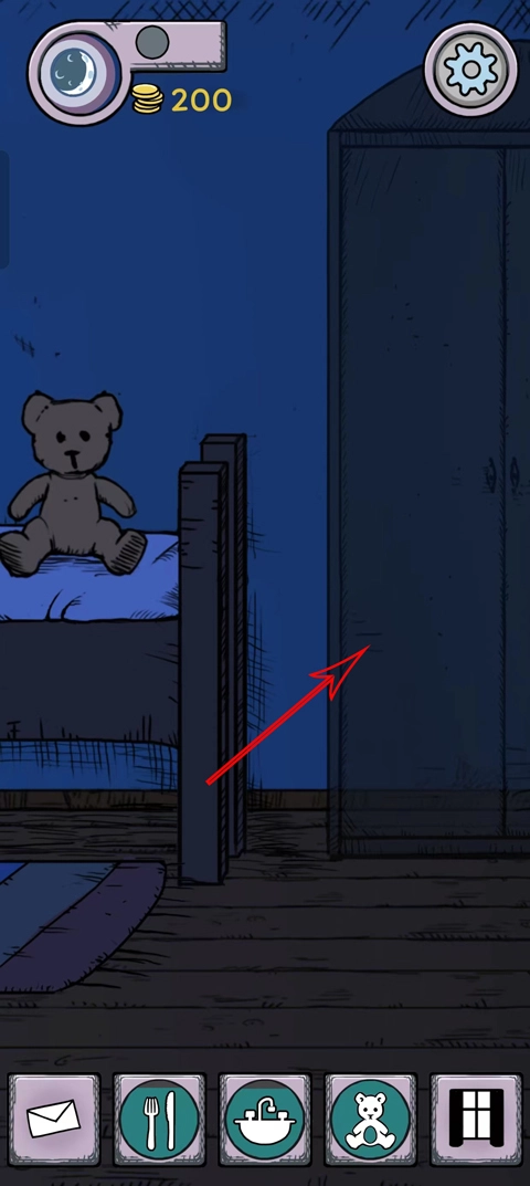 1、换衣服的操作十分简单,你只需先点击下方菜单里带有小熊图案的按钮,就能进入孩子的房间。