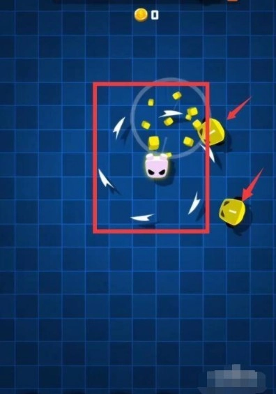 2、在这款游戏里,我们需要操控小人,利用其身边旋转的飞刃去消灭怪物,注意别让怪物冲破飞刃的防御来攻击我们。