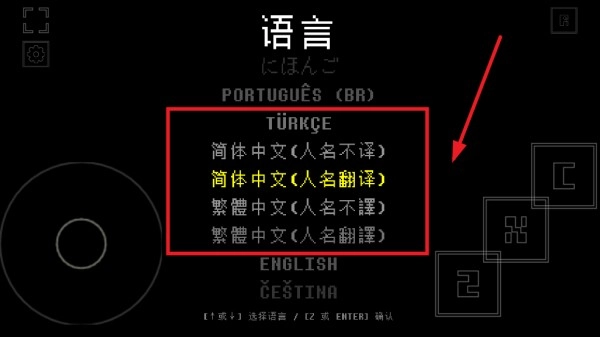 3,玩家通过控制左下角的方向盘选择中文的选项