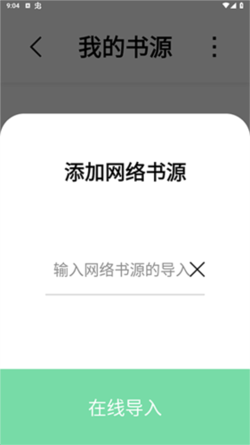 4、而网络导入则是直接输入书源的网络链接即可,非常的方便,然后点击在线导入就可以了,两种导入书源的方法都可以成功添加书源