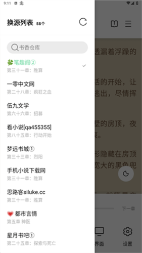1、进入书香仓库软件首页,随便点击一本小说,可以看到有30个源