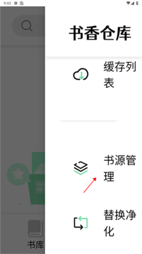 1、打开书香仓库,然后点击右上角的三个点,选择书源管理