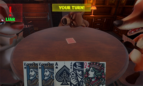 在《骗子酒馆》的正版游戏里,玩家将踏入一个遍布狡黠又聪慧的动物角色的奇妙天地。在这里,大家要依靠出牌和报出牌值的方式,与其他玩家展开一场场智谋的交锋。这款游戏的核心魅力正是“欺骗”——你既可以如实报出牌值,也能选择撒谎来干扰对手的判断。不过得格外谨慎,一旦谎言被戳穿,就会触发紧张刺激的俄罗斯轮盘惩罚环节,这无疑是对胆量与运气的双重考验。游戏里的每一个抉择都可能扭转局势,而每一轮出牌,都是一次心理博弈与策略运用的精彩对决。
