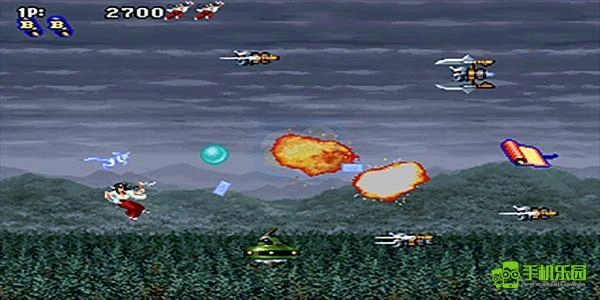 游戏中会遇到弓箭手类型的敌人,他们会朝正前方快速射出一连串子弹。加上游戏采用二重卷轴机制,快速移动的背景容易干扰你的视线判断。建议你像图四展示的那样,保持在弓箭手的八点钟或十点钟方向(切勿正对敌人)。此时你的主武器因直射无法命中目标,但使魔的子弹可以有效攻击。选择近距离站位是因为目标越近,使魔的攻击频率会越高。 清理完几波杂兵后会遇到战船Boss。它最具威胁的攻击是第一轮三发子弹射击后的散射。由于三层散射子弹不在同一直线上,你需要通过小幅移动来躲避那些偏离其他弹道的子弹。当然,如果你不采用视频中的策略,而是提前贴近战船骷髅头的犄角位置,以此提升使魔的攻击频率,就有可能在Boss发动散射前将其击败。