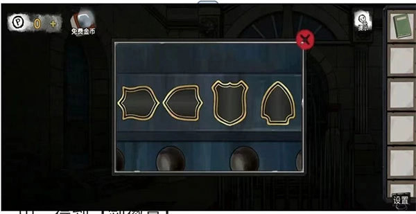 把石块放置到中庭右侧的石墩上,依据议会厅桌子上的线索,从上方到下方依次点击,参照图⑤,获取【斧徽章】,再把这个徽章安装到议会厅里持斧盔甲的胸口位置,就能得到【钥匙】。