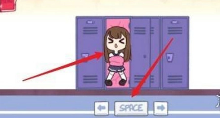 1、这款游戏里面有左右两个按键,在柜子里面发在道具口香糖。