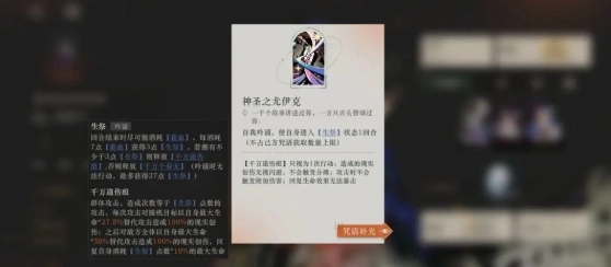 要注意的是在己方回合行动结束后生祭也可以转化,所以大招打出的时机可以灵活把握。如果需要更频繁打出大招,可以先出诺谛卡的大招牌,先消耗完信仰,之后出的牌积攒薪血后可以重新转化为信仰,而不会溢出。不过大招第一个放需要有其他能高效攒薪血的队友才行。