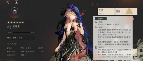 另外还要注意诺谛卡的血量,由于心相效果以及塞梅和温妮的狂想效果,诺谛卡的血量低于一定百分比时可以将伤害最大化,但血量不能压太死以免被敌人攻击打死,死一次会消耗一次复还,然后下回合扣减薪血重新施加复还buff,死越多扣越多,以目前的薪血体系的薪血积攒速度来说,这种扣减惩罚是挺严重的。