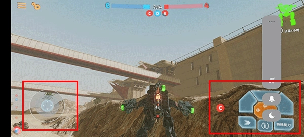 可以看到具体操作方式:左手轮盘负责控制角色行走,右手轮盘则可实现射击、加速、释放技能等功能。