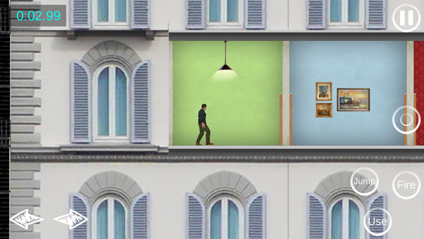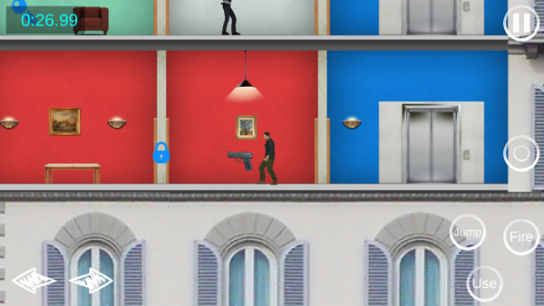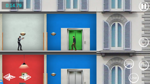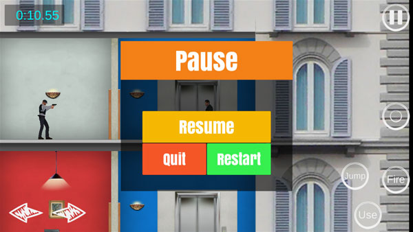 3、游戏通过手机屏幕方向键进行移动,右边为攻击、跳跃、乘坐电梯,以及暂停键;