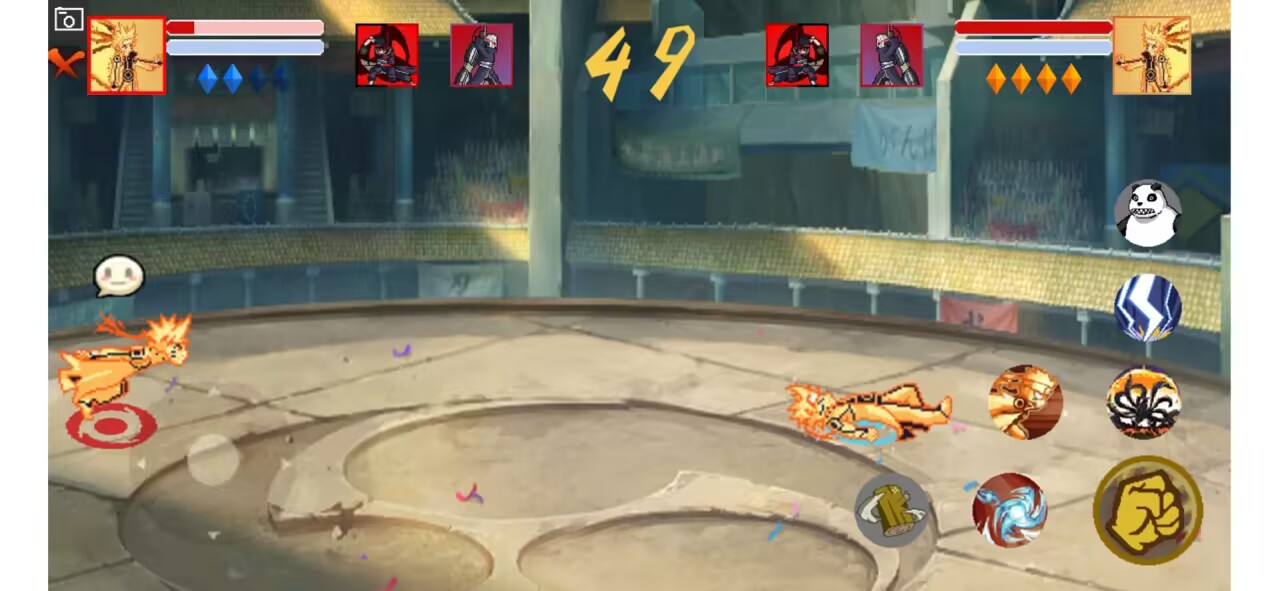 战斗过程中,玩家通过虚拟摇杆控制角色移动,点击技能按钮释放忍术技能。每个角色都拥有独特的技能组合,包括普通攻击、主动忍术技能和奥义技能。普通攻击可进行连续打击,积累查克拉;主动忍术技能具有不同的效果,如范围伤害、控制敌人行动等;奥义技能是角色的强力技能,消耗大量查克拉,但能造成巨额伤害或产生特殊效果。玩家需要根据战斗场景和敌人状态,合理运用技能,把握技能释放时机,以取得战斗胜利。