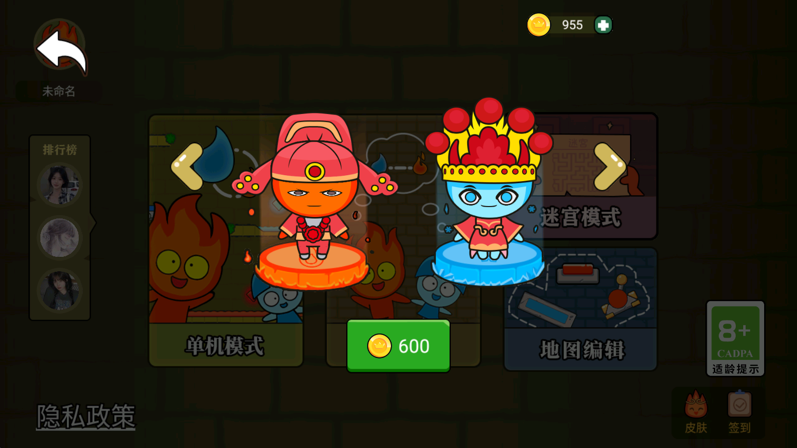 7、收集的金币可以让我们去解锁各种好看的冰火人皮肤。
