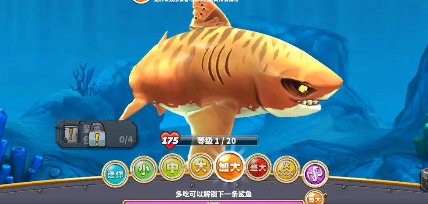 玩家能够借助升级大白鲨以及解锁全新的鲨鱼种类来增强自身的实力,进而挑战难度更高的关卡。