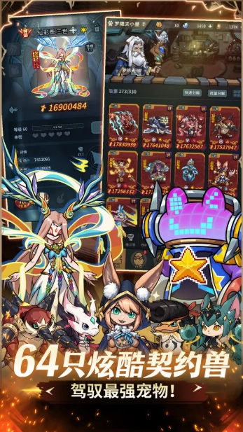 新增光耀系与魔能系契约兽,通过刷蛋进化可提升战力,神话契约兽仙彩鹿和钻石契约兽炫音呱呱惊艳亮相,参与活动有机会赢取三世契约兽潮汐海妖,最高奖励即可收入囊中。