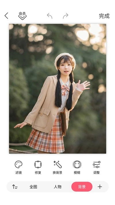 点击【背景】选项,就能开展更换背景、背景模糊处理以及修复等相关操作。