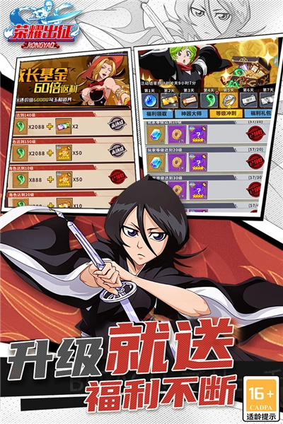 《荣耀出征》是一款深受众多玩家喜爱的策略卡牌游戏,它以《死神》动漫为背景进行打造,并且由经典剧情故事改编而成,其中还融入了放置、闯关、战斗等多种玩法元素。在这里,你能够搭配出自己心仪的阵容,去击败眼前更多的敌人!在《荣耀出征》里,玩家可以选择大量原著中出现的角色,游戏的动画特效十分丰富,对原著的还原度也很高,酷炫的连招战斗玩法还将带来更为刺激的战斗氛围感!