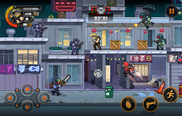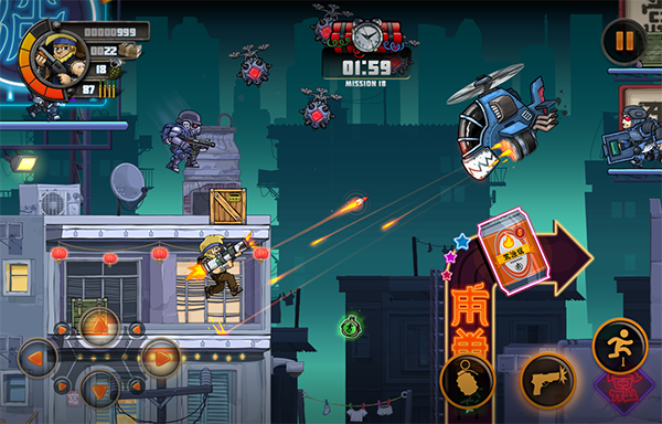 1、这游戏提供了超扎实的横版射击体验。玩家可以选自己喜欢的英雄,在多达120个精心设计的关卡里一路闯关。