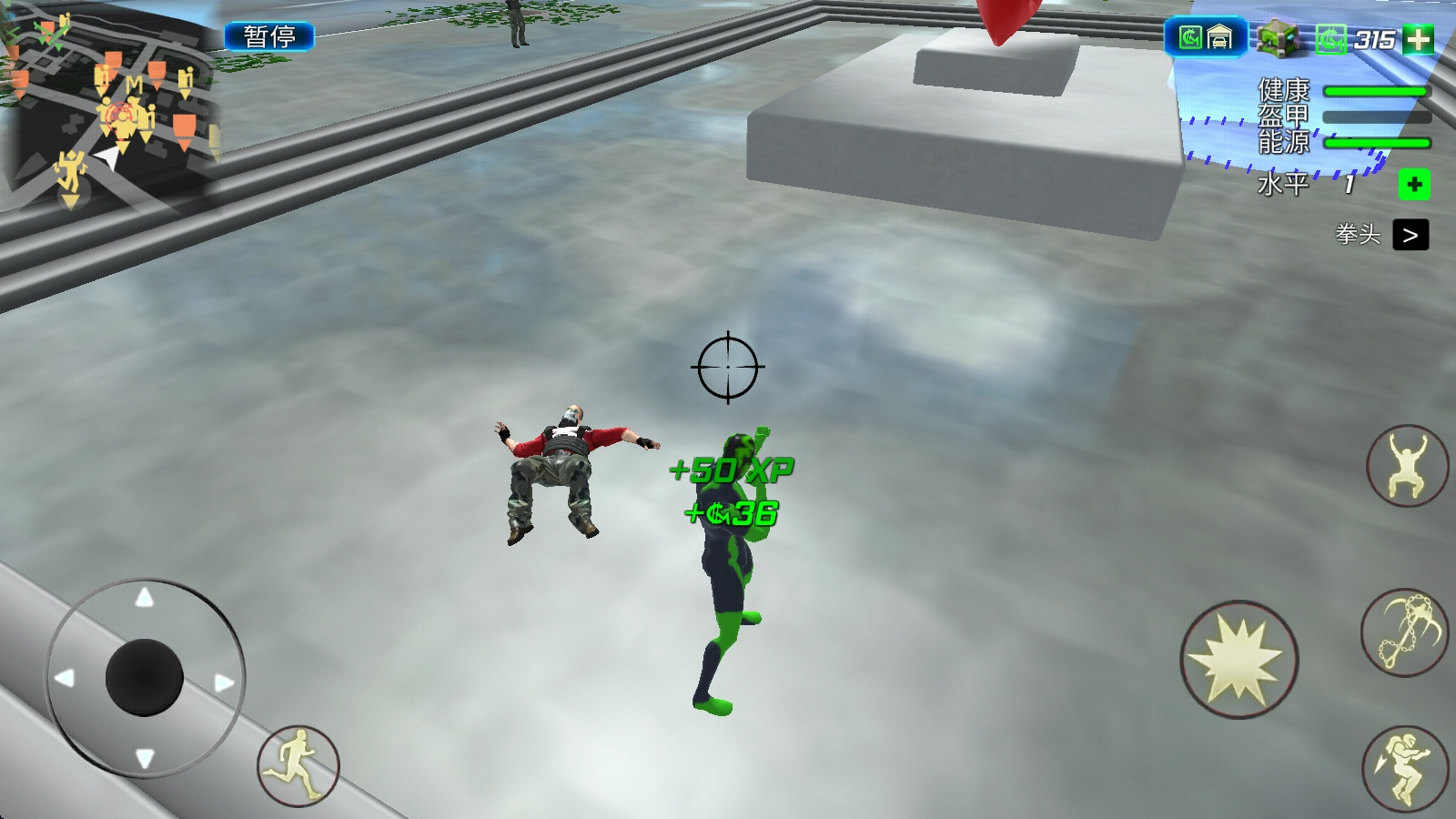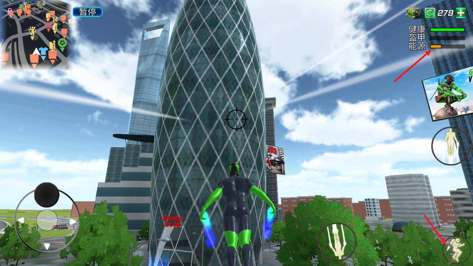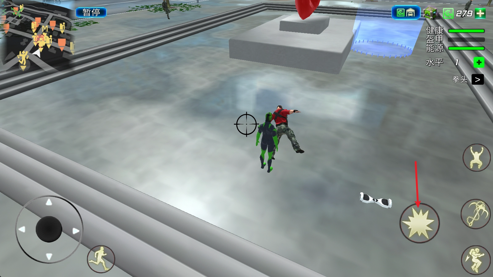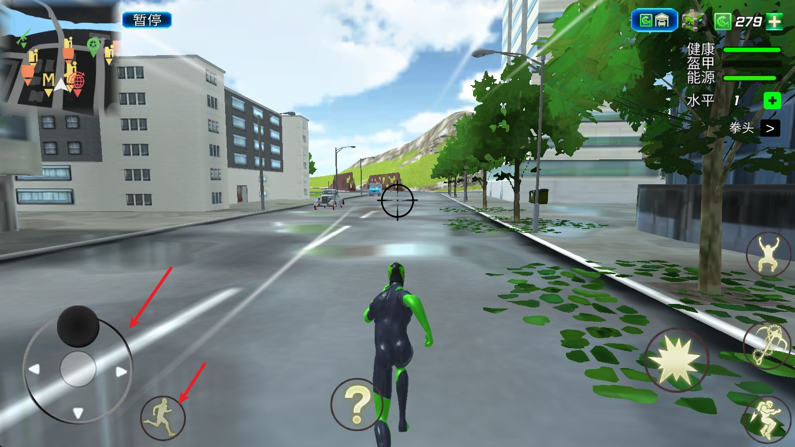 接下来用左侧的摇杆操控人物移动,旁边的按钮还可以实现加速功能。