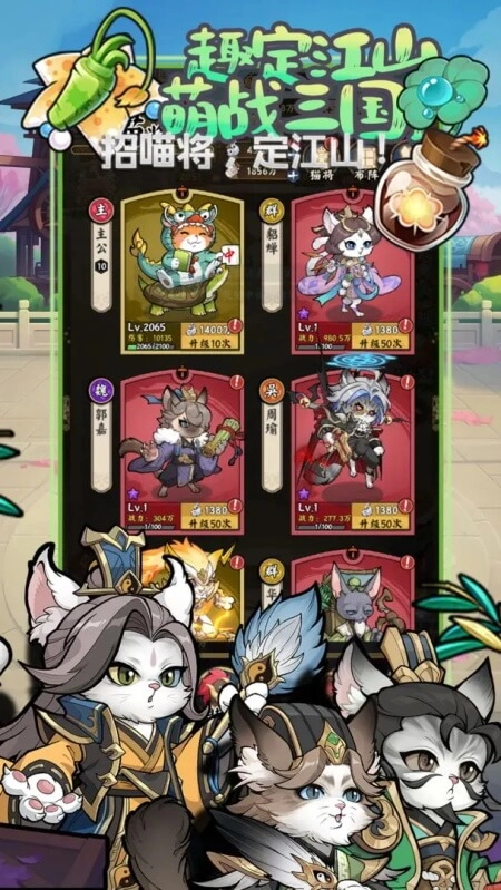 《猫狩纪》是一款以猫化三国为题材的独特卡牌游戏。在游戏里,玩家能够招募各类拥有特殊技能的猫伙伴,接着借助升级、进阶、觉醒等途径持续增强它们的战斗能力,构建专属于自己的顶级阵容。之后,在应对不同的敌人与地形时,玩家需要策略性地挑选不同的出战阵容和装备来与之对抗。