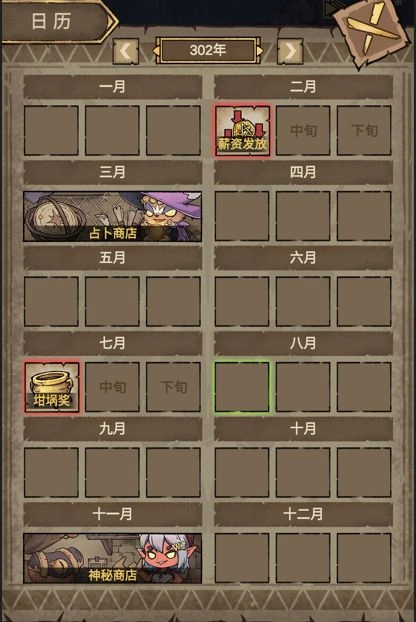 点击游戏顶部的栏目可以打开日历,日历里会记录下每个月的重要事项