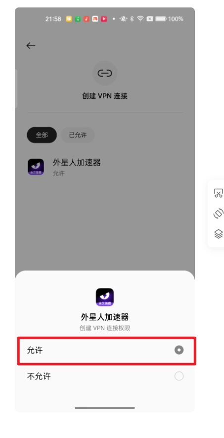 方法3:手动授予外星人加速器权限,由于不同手机的操作存在差异,以下是大致的操作流程 步骤1:打开设置应用 步骤2:在搜索框输入“VPN”进行查找 步骤3:定位到“外星人加速器”,并允许其获取VPN建立权限