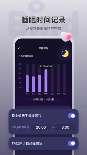 bind是一款专为异地情侣打造的互动软件,它提供了异地同步看片、同步听歌等丰富的互动功能,能让异地情侣轻松实现一起听歌、看电影;还能让双方查看彼此的实时定位,随时随地了解对方的状态,即便身处不同城市也能拉近距离。此外,用户还可以在这里记录恋爱中的甜蜜日常,留存美好回忆。