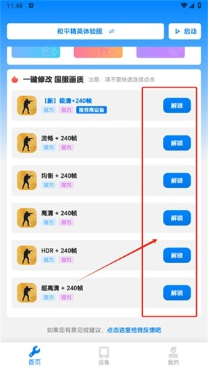 点击解锁,可以一键快速解锁各种画质选项
