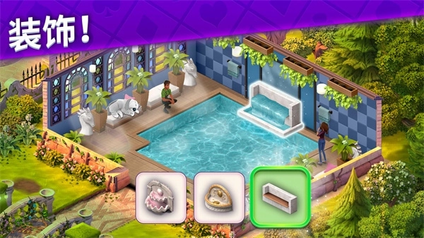 随着剧情的逐步推进,你要协助Ava挽救叔叔的庄园,对其进行翻修与重建,让它重现往日的辉煌。你需要不断为房间和花园添置新的装饰,锻炼自己的室内装修能力,打造出独属于你的艺术精品。