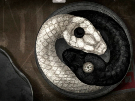 7、回到4楼,用照片对门右边的鱼缸进行操作,得到摇杆。回到3楼,把摇杆放在盒子上,调整它的方向,获得老黄符。