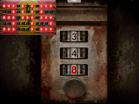 7、把梳子放在右边的架子上,往右走与护士对话,继续往右,修复视力表断开的电线,获得提示,根据提示打开右边门锁(逆时针旋转90度)。