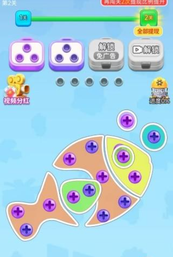 螺丝拆一拆赚钱小游戏是一款通过拆除螺丝钉领取红包的趣味游戏。在丰富特色的关卡中,各种任务需要完成思考其最终通关技巧。游戏中不断提升解决问题的能力,这样才能找到技巧的同时快速反应,当然匹配相同颜色通关之后获得道具可以兑换红包,成为这里最聪明的通关者吧。