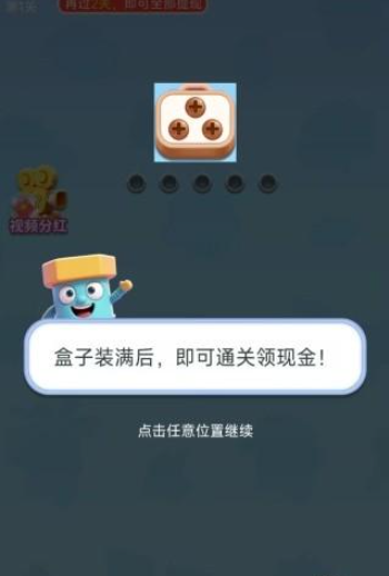 2、通过单步操作触发连锁反应,当收集盒被填满后即可通关并获得现金奖励。