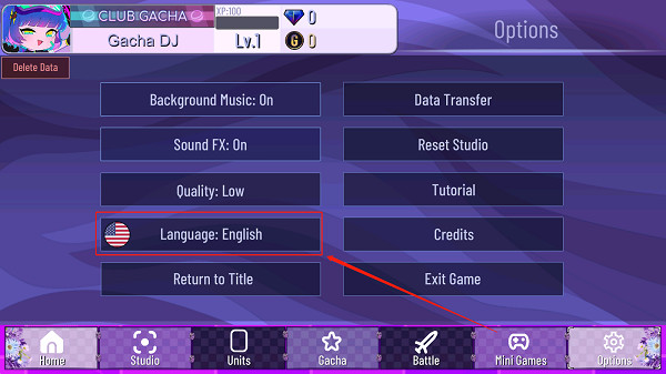 1、打开加查薰衣草2026游戏,点击右下角的“Options”设置。