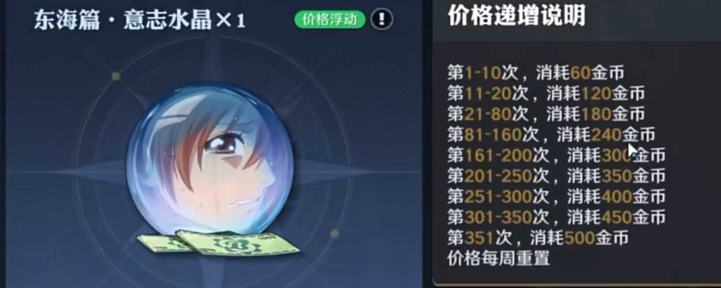 4、意志:意志是目前阶段给战力最多的,每星期的前10抽只要60金币一抽,建议都拉满,11-20抽价格翻倍,120金币一抽,小氪可考虑,再往后相对花费较大,平民玩家就不考虑了。