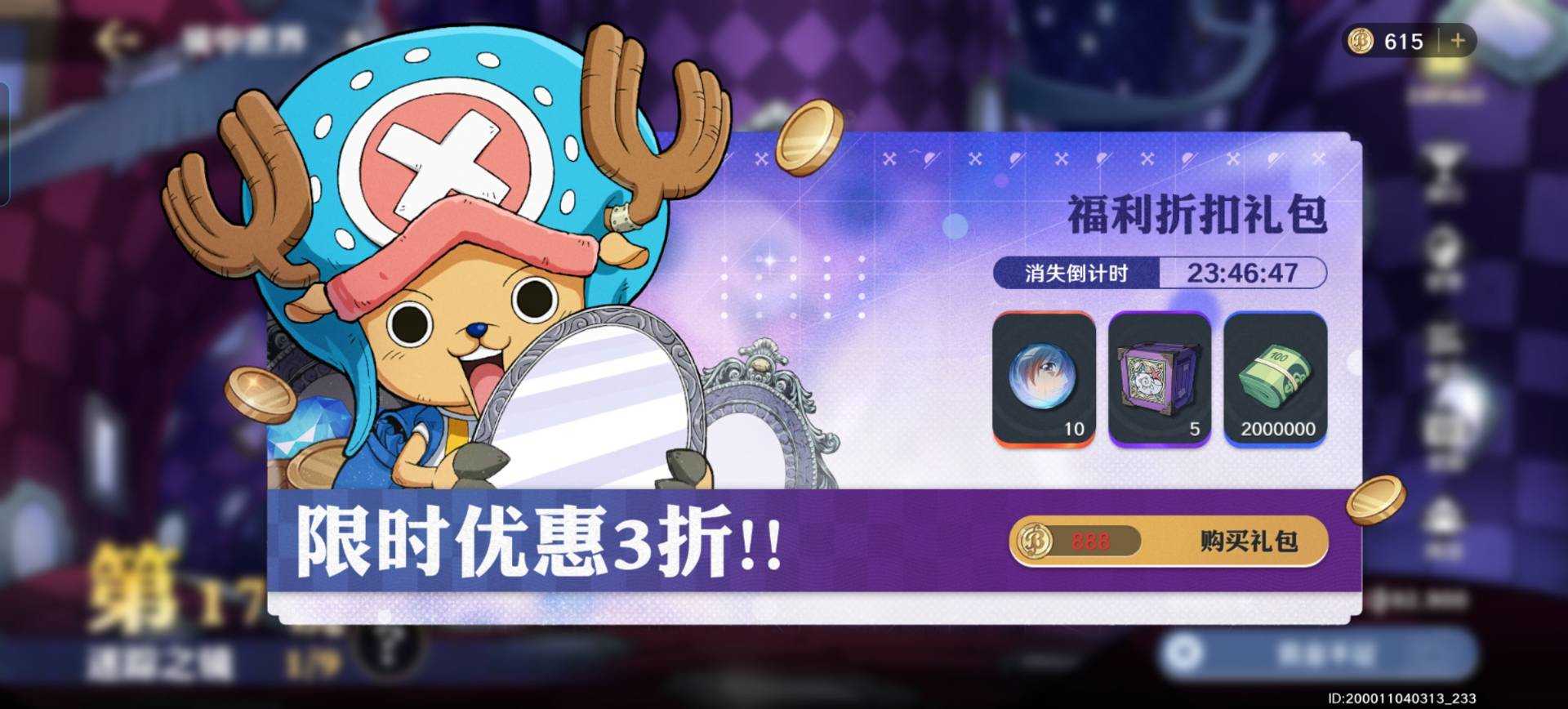 2、商城的300金币100w贝利必买,日常招财前几次的30金币5w贝利也可以买,后面没有贝利寸步难行。