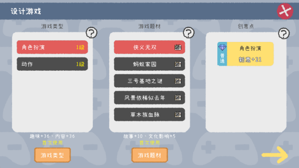 2、成立你的游戏公司,开始设计你的第一款游戏,选择好游戏类型题材开始创作。