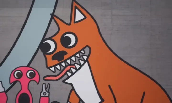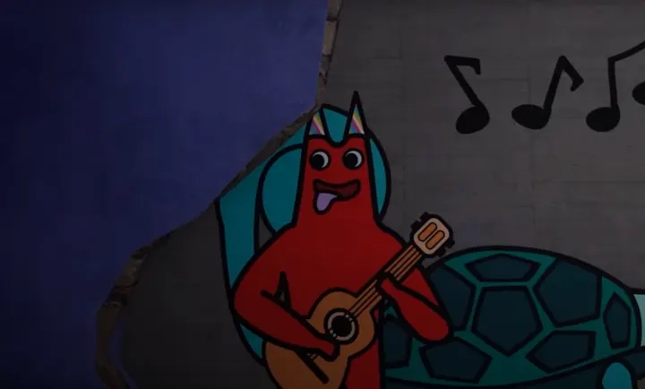 2、可爱的幼儿园怪物,墙壁上的手绘卡通图案,超级可爱。
