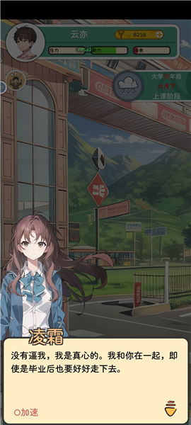 8.完成主线1-7即完成了凌霜线全部内容,但并不一定百分百触发凌霜的两个结局。如果在周目内同时还被其他女生表白了(无论是否接受),都记得和凌霜的互动(约会、闲聊等)保持在几名女主之间最频繁。