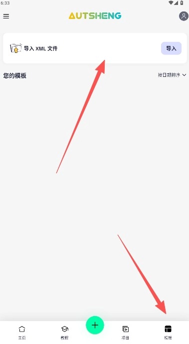 8、在模板界面下,我们可以导入相应的模板素材。