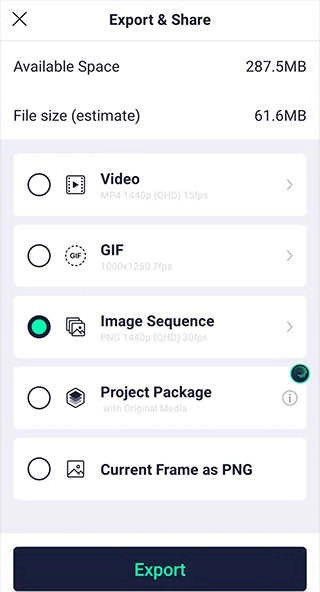 导出的文件格式有:视频(Video)、动态图(GIF)、Image Sequence(图像排序包)等